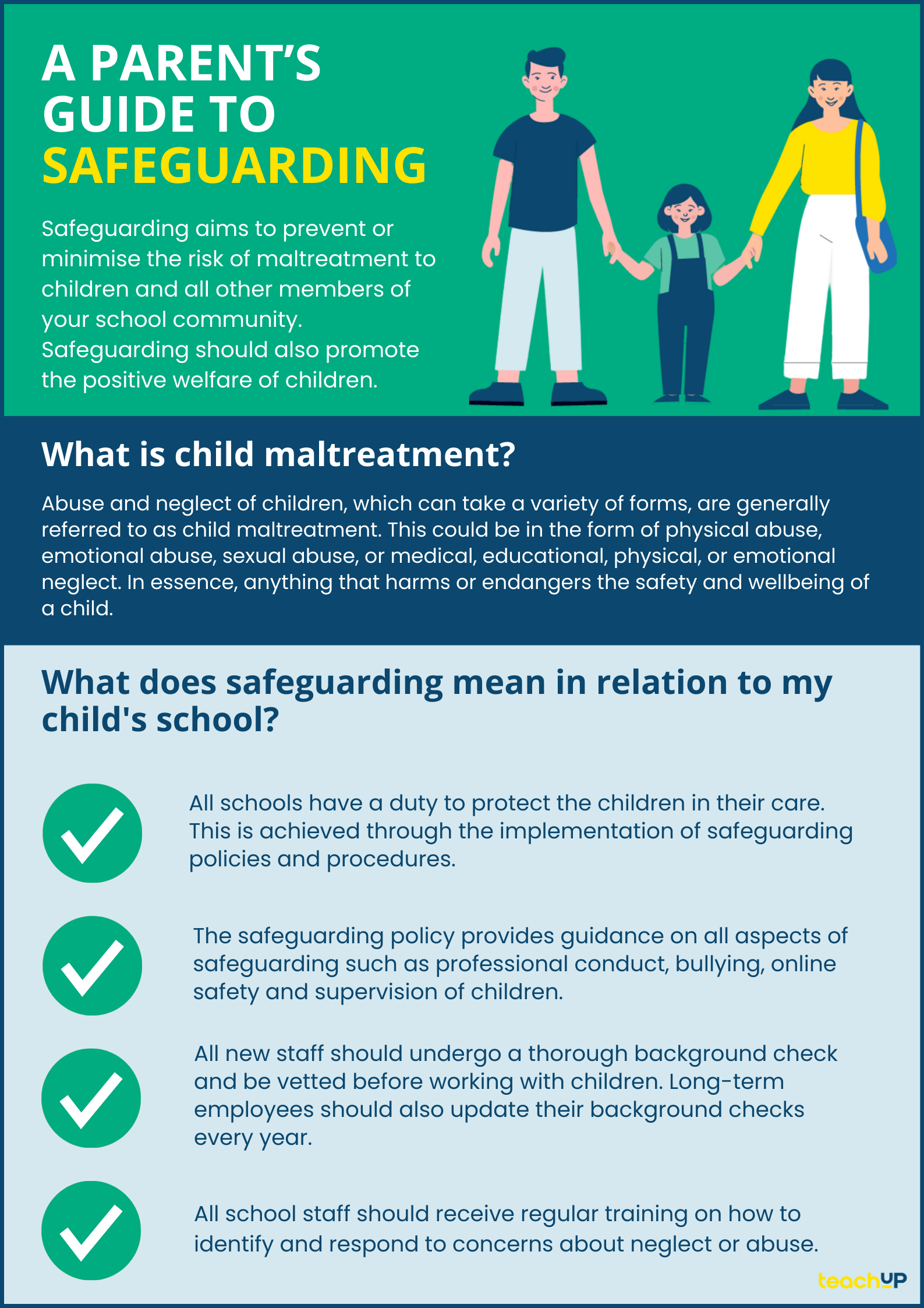 This introductory guide developed especially for parents and caregivers highlights the importance of safeguarding and child protection policies and procedures at your child's school. You will learn why your school implements certain policies and procedures and how you can effectively collaborate and communicate with the teachers and staff to ensure the safety of all children.